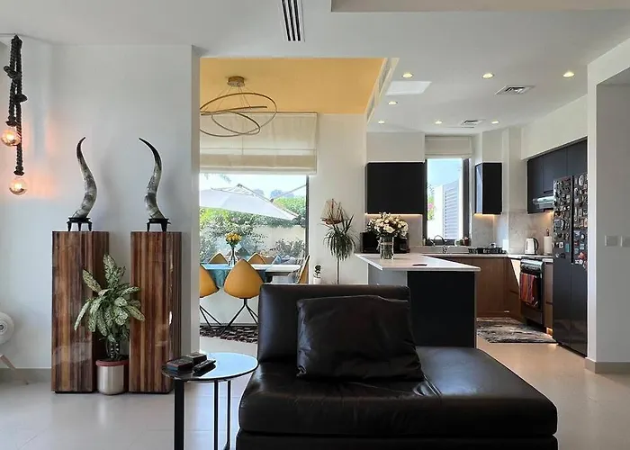 The 4-bedroom Dayf-Nad Stunning 5 Bedroom Villa In Dubai Hills is situated a mere 5 minutes' walk from Gallery One, featuring such comforts as Wi-Fi and complimentary private parking. Located 4.7 km from Mesquita Jumeirah, the villa boasts a terrace with views of the garden.